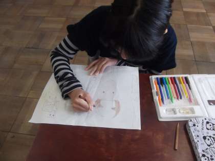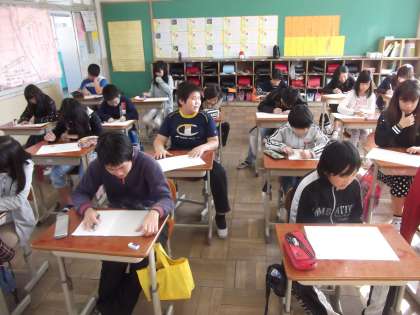 6年1組では,図工の時間に「版画」の制作しています。版画のテーマは,小学校生活の思い出です。印象に残って行事を思い出しながら下絵を描いていました。