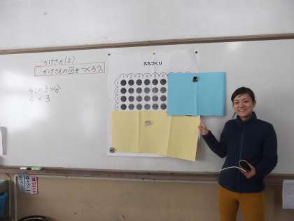 2年2組では,算数の時間に「かけざん2」を学習しています。今日は,かけざんの図を作っていました。みんな先生のお話をしっかり聞いて「かけざんの図」を書くことができました。