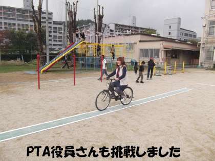 子どもたちが挑戦する前に,PTA役員さんや先生も挑戦してみました。なかなか難しく四苦八苦していました。