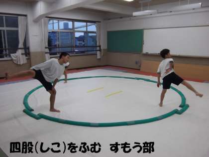 すもう部は,今日は3名/4名中の参加でしたが,一生懸命四股(しこ)をふんで練習していました。