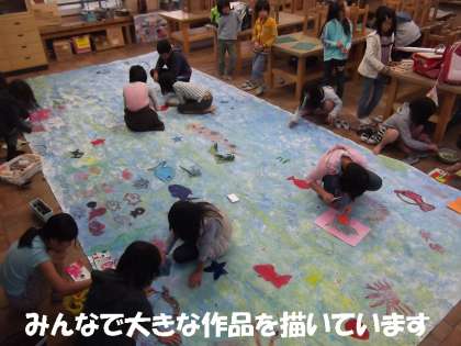 図工部は,なんと6畳以上ある大きな紙に共同作品を描いていました。年明けの作品展に出品するそうです。