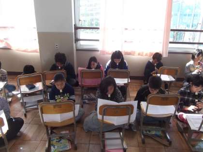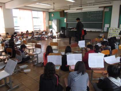 6年生は1,2組合同で音楽の授業を行っていました。今日は,「パッヘルベルのカノン」をリコーダーで演奏していました。とてもきれいな音色が,学校中に響いていました。