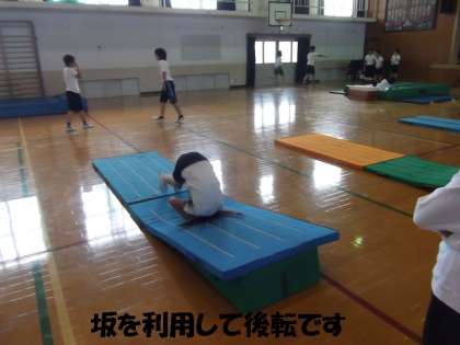 倒立や側転が苦手な子どもたちが多いようですが,自分の力で,もう少しでできる技を集中して練習していました。