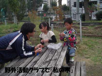 「なわとびクラブ」は,高度な技のダブルダッチに挑戦,「運動クラブ」はバスケットボール,そして,「野外活動クラブ」は,ネイチャーゲーム「私の木」に楽しく取り組んでいました。
