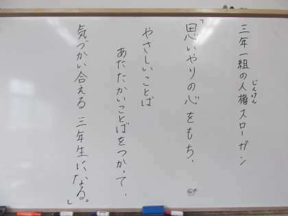 30日(日)に行われる「醍醐西タイム」に向けてクラスの人権スローガンを決めていました。子ども達の人権に対する思いがこもった「醍醐西タイム」是非,見に来て下さい。