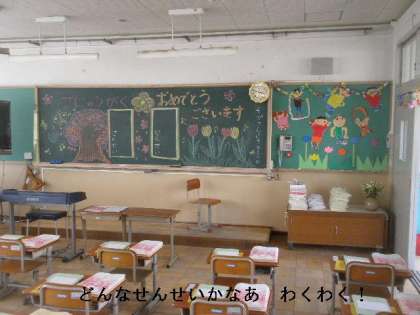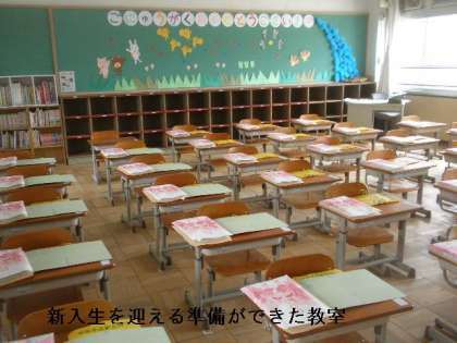 いよいよ明日は入学式です。34名のかわいい1年生が入学してくれます。1年生の教室の準備も終わりました。