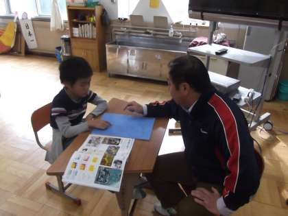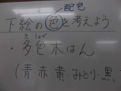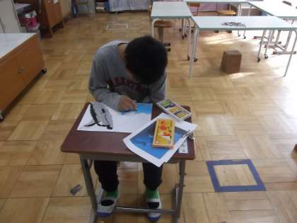 3組の高学年の子ども達は,図工の時間に「版画」をしています。今日は,版画の下絵の制作をしていました。