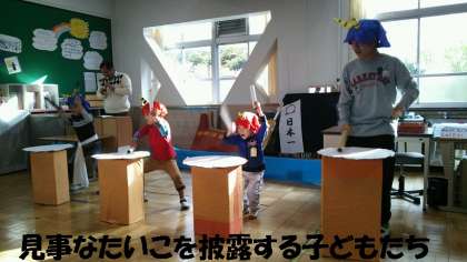 ちょっと緊張気味の子どもたちでしたが,「ももたろうとおにがしま」の劇を見事に演じてくれました。