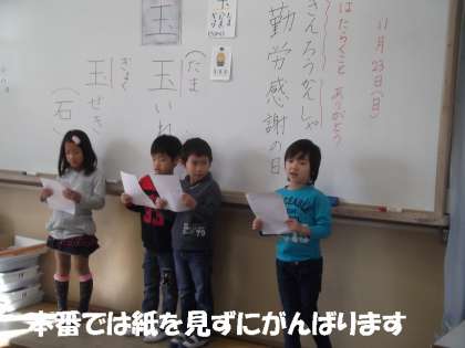 今日はその手紙をみんなの前で,読む練習をしました。