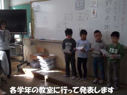 そこで,これまでお世話になったお兄さんお姉さんに,お礼の手紙を書き各学年の教室に届けることになりました。