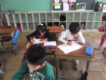 4年生は,「一憶より大きい数」「小数」「漢字」のプリントを中心に学習を進めていました。