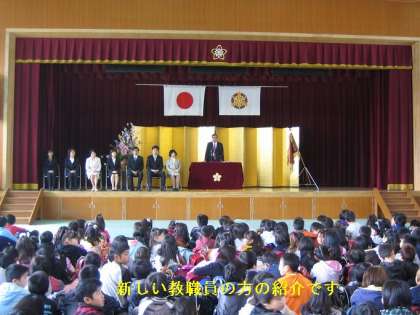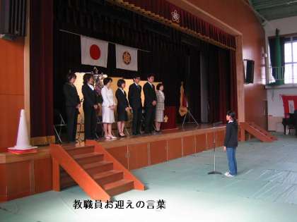 教頭先生(着任済み)と日本語教室の先生(明日からご出勤)をのぞいて今日は7名の教職員を子どもたちに紹介しました。