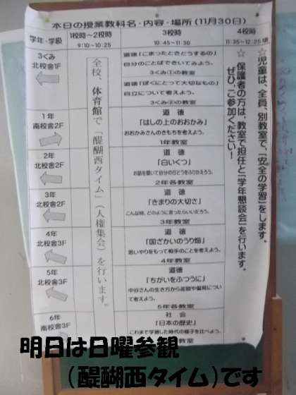 醍醐西人権月間の取組を,各学年代表が発表する「醍醐西タイム」「人権学習の参観授業」「人権保護者懇談会」そして,災害時(緊急時)に備えての避難訓練「児童引き渡し訓練」を予定しています。