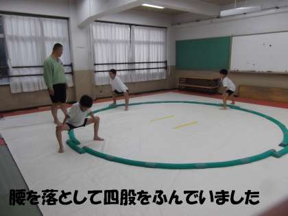 すもう部は,少人数3人での練習でした。基本練習の「四股(しこ)ふみ」を大事にしています。