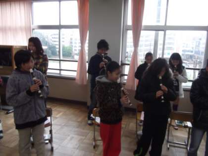 6年生全体で,「パッヘル・ベルのカノン」を曲をリコーダーで演奏していました。全員の息が合いとてもきれいな音色でした。