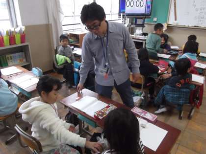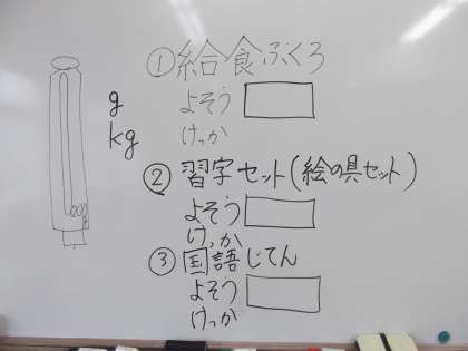 算数の時間に「重さ」についての学習をしいます。いろいろなものを使って重さを予想し,重さを量っていました。