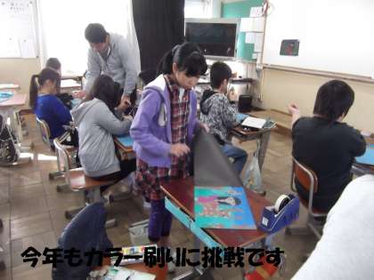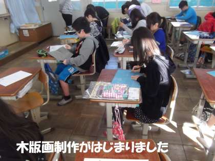 今年も木版画制作がはじまりました。6年生は毎年,多色刷りに挑戦します。