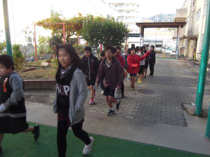午後から6年生は,栗陵中学校で行われる,部活動の体験入部に出かけました。