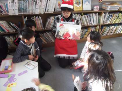 昼休みに図書館で図書支援員の方に本の読み聞かせをしていただきました。この機会に今まで以上に本に興味を持ってほしいですね。