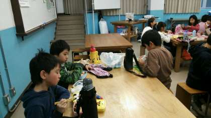 すべての学習が終わって、お弁当タイムです。暖かい部屋をお借りして楽しくいただきまーす。