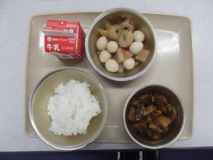 今日の給食の献立は,「ごはん」「さんまのかばやきふう」「かんとうに」「牛乳」です。食べ物語源辞典「かばやき」・・むかし『うなぎ』は竹ぐしにさして丸やきにして食べていました。その形が,がまという植物の「ほ」に似ていたので,「がまやき」と言われやがて,「かばやき」と言われるようになりました。