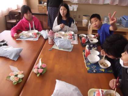 6年2組では,食育の学習の後,ランチルームで給食を食べました。もちろんご飯もおかずも完食です。ごちそうさまでした。