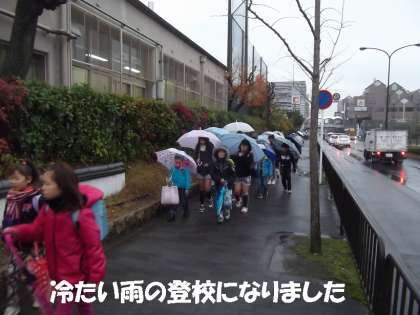 朝から冷たい雨が降っています。登校してきた子どもたちも,こころもち元気がないようです。でも午後からはあがる予報です。