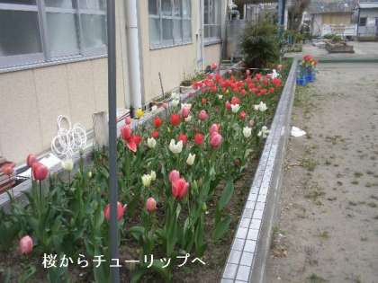 葉ボタンから桜,そしてチューリップへと,季節はどんどん変わっていきます。