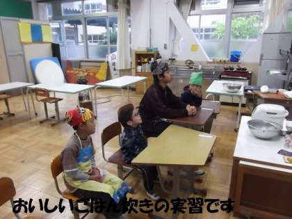 ご飯を炊いたあと,おむすび作りもします。楽しみです。