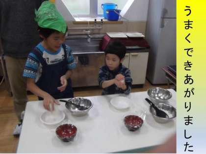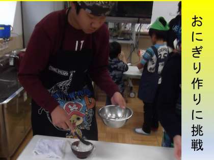 ごはんがたきあがったので,いよいよ「おにぎり」作りです。三角かな俵(たわら)かな?それとも???