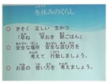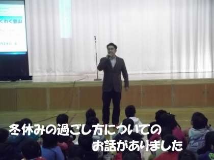 朝会の最後に,担当の先生から「冬休みのくらし」について,諸注意を聞きました、
