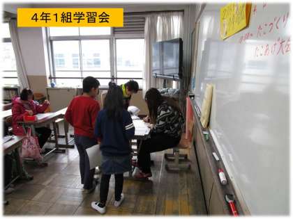 4年生もたくさん参加してくれました。漢字の書き取り学習のあと,今年の目標を決めてカードに書いていました。