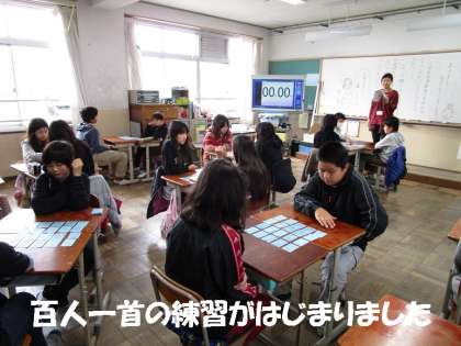 1組は,新年早々漢字のテストで授業が再開しました。2組は,百人一首の初練習です。
