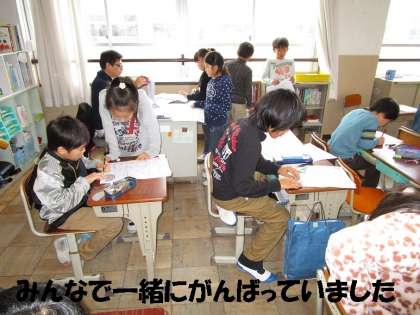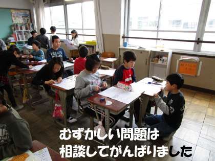 むずかしい問題はみんなで相談して教え合っていました。本番のテストは相談できませんので,がんばってくださいね!