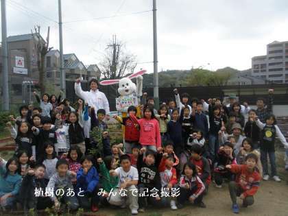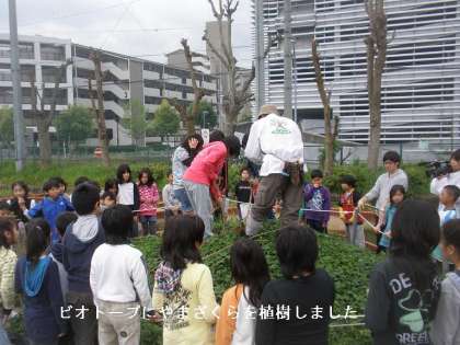 みどりの授業を受けた後,ビオトープに行って「みんなの木(やまざくら)」を植樹しました。