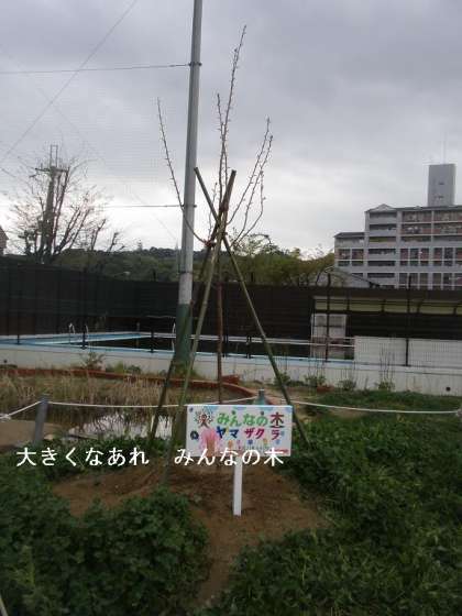 このやまざくらは,醍醐西小学校みんなの木です。これから何年も何十年も,みんなが大人になってもずっと春にはきれいな花が咲くことでしょう。