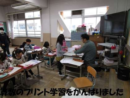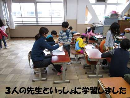 漢字,計算プリントを3人の先生といっしょにがんばっていました。