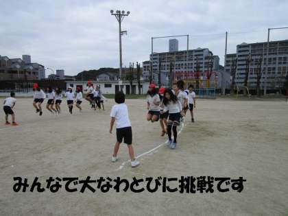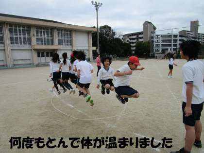 大縄跳びで体がポカポカ温まりました。ダブルダッチのも挑戦していましたが,まだ難しくうまく跳ぶことができませんでした。