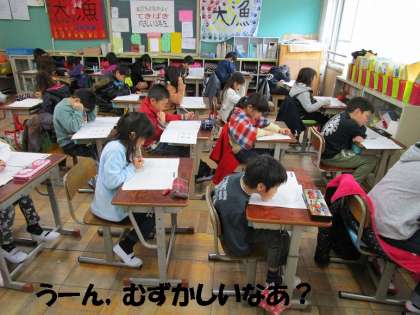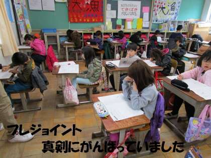 身体計測後,全市統一テストのプレジョイントに挑戦しました。先生も気合を入れて,子どもたちを励ましていました。子どもたちは,わからなくても,空欄にせずに何か書こうとがんばっていました。