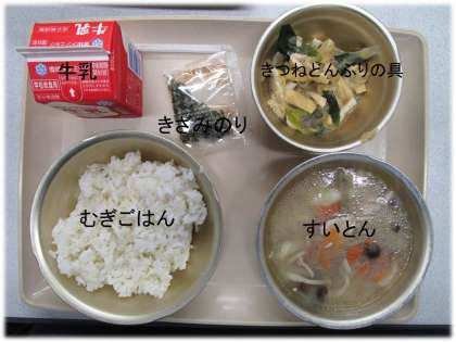 「むぎごはん」「すいとん」「きつねどんぶりの具」