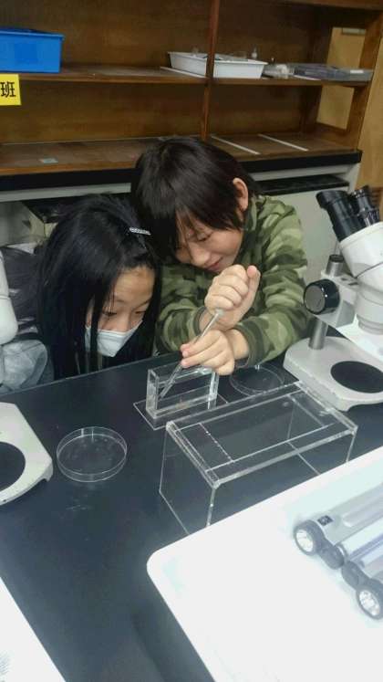 アルテミアをスポイトで吸い上げるのですが,なかなか上手いこと出来ずに苦戦しています。