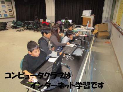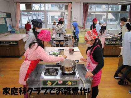 特別教室では,「家庭科クラブ」がお雑煮作り,「コンピュータクラブ」がインターネットで検索学習をしていました。