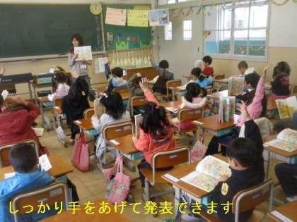 国語の授業で,教科書をみんなで声をそろえて音読できるようになりました。また発表もしっかり手をあげて発表しています。