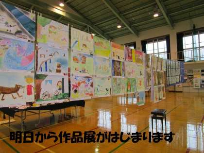 本日から校内作品展(〜2/5)がはじまります。同時に,醍醐10校の支部巡回展の作品も展示されています。