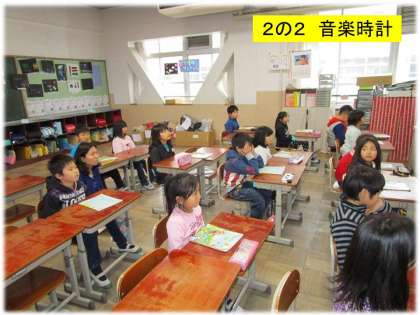 2年生の参観授業は音楽でした。2組は「音楽時計」の曲を聴いて曲の感じを話し合いました。