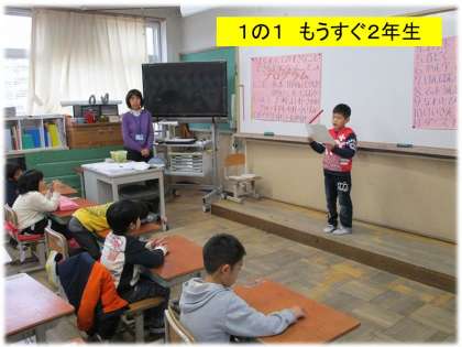 1年生は生活科の学習「もうすぐ2年生」を観てもらいました。この1年で,できるようになったことを発表しました。