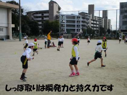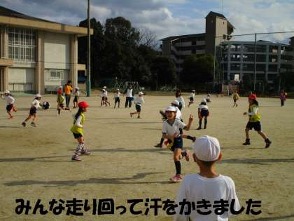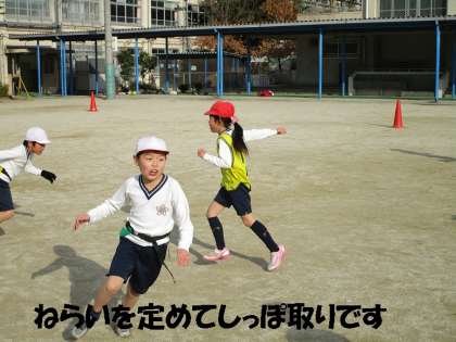 午後からの体育で,持久走大会に向けてペース走をした後,みんなでしっぽ取りをしました。
