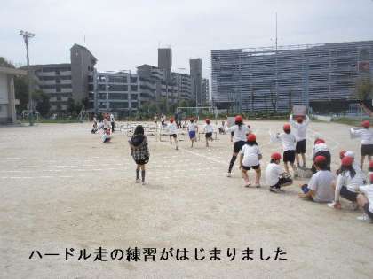 運動会に向けて先週は組体操の練習が始まったとお伝えしましたが,今週はハードル走の練習も始りました。自分の歩幅にあったハードル間を伝え,ハードルを動かして取り組んでいます。