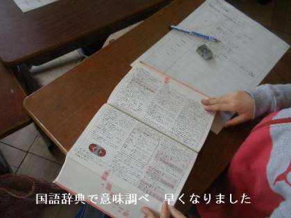 国語の意味調べをしています。国語辞典に慣れてきたのか,調べる言葉をさがす時間が早くなりました。