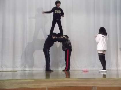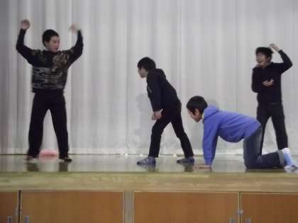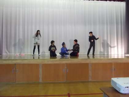今日は,みっきーわくわく集会(児童集会)が行われる日です。写真の様子は「ジーカシャゲーム」をしています。このゲームは,昔話のある場面を集会委員会の子ども達が演じて何の昔話かを当てるゲームです。それぞれの写真の昔話が何かわかりますか。